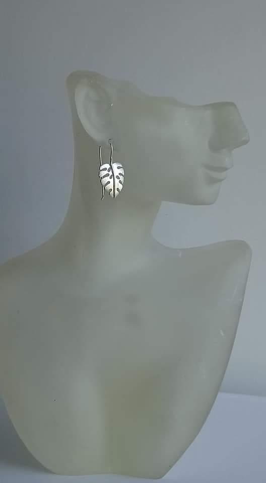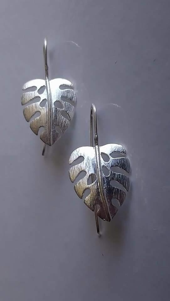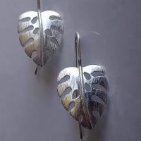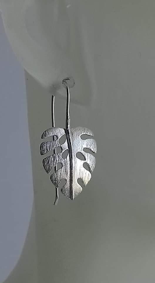 Boucles d'oreilles phylodendron en argent brossé.
